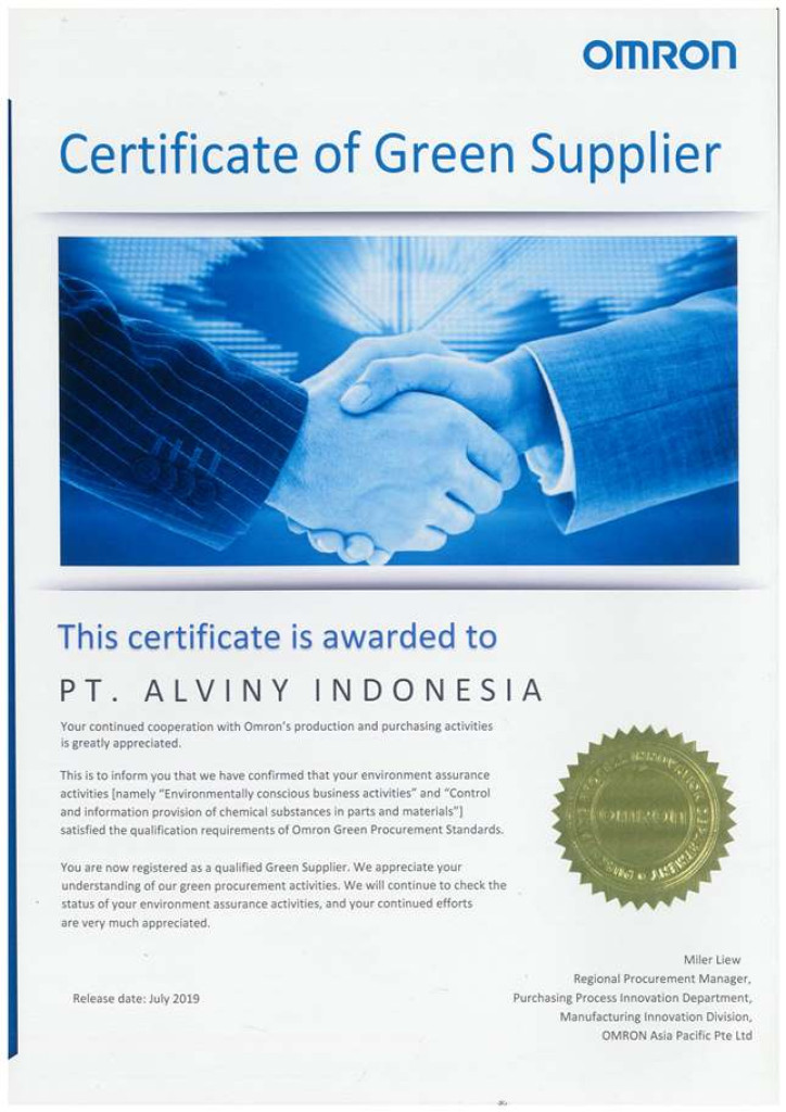 Certificate of Green Supplier - OMRON